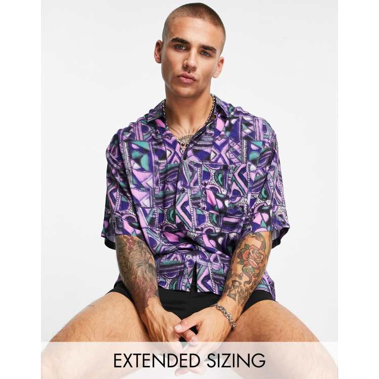 Asos Design Boxy Oversized Shirt In Vintage Inspired Print Asos